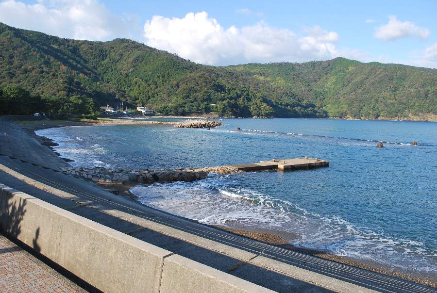 食見海岸は、約1.5mの波があります。