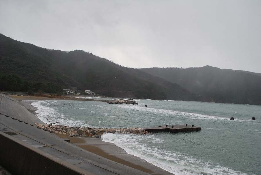 食見海岸は、約1.4mの波があります。