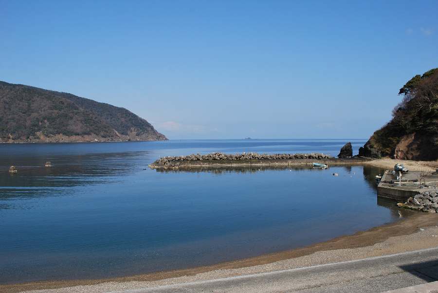 食見海岸は、波も無く穏やかな海況です。