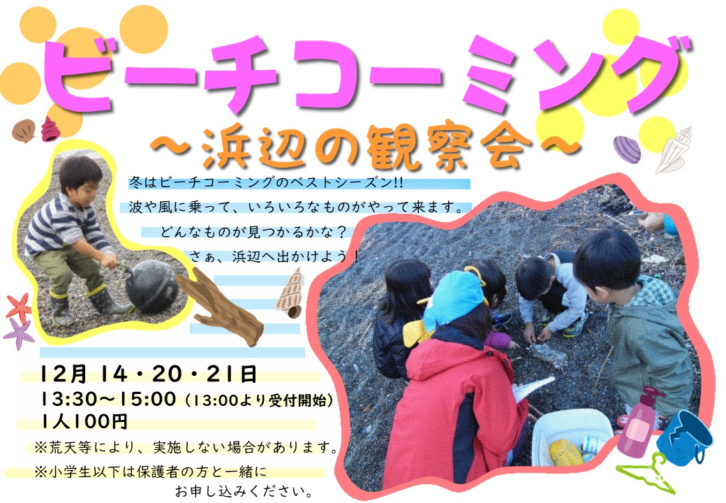 本日(12月20日(土))の「ビーチコーミング」は、開催します。