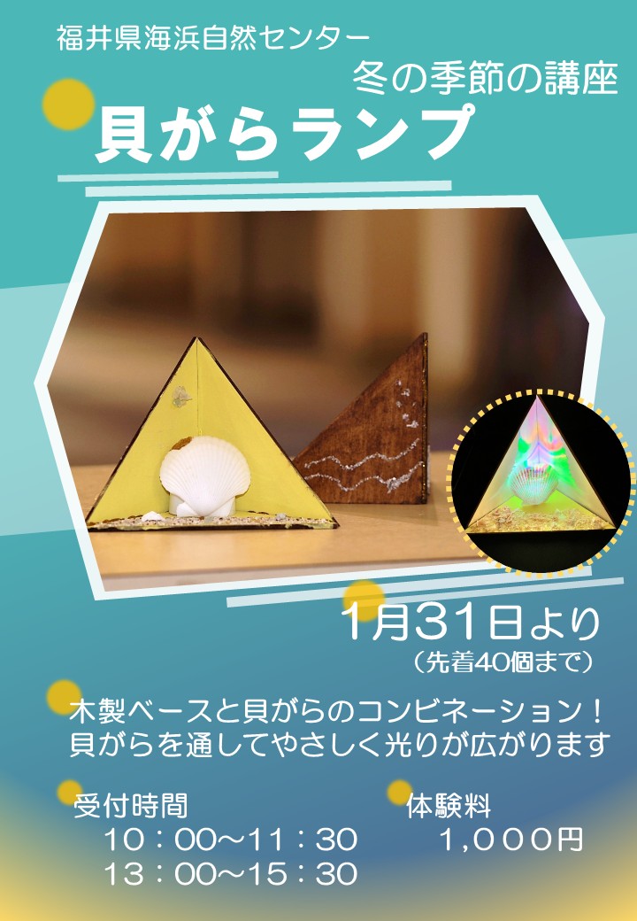 「冬の講座シリーズ」の第2弾として、1月31日(土)より「貝がらランプ」を実施します。