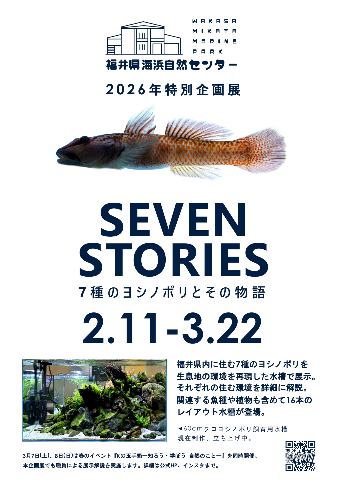 2月11日(水・祝)から、企画展示室において「SEVEN STORIES 7種のヨシノボリとその物語」を開催します。